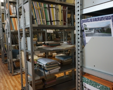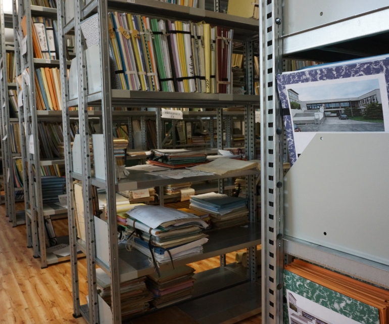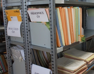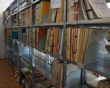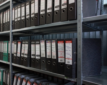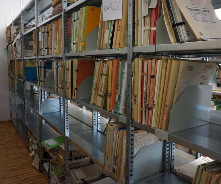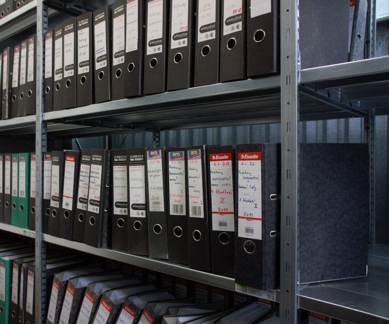 Pohled na archivaní regály